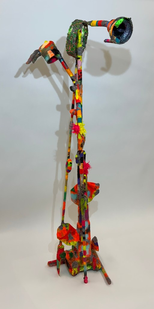 Nonduality Scope. 2022, mixed materials, 70” x 22” x 18”Nonduality Nergal. 2022, mixed materials, 77” x 16” x 28”Duality Threshold. 2022, mixed materials, 105” x 59” x 34 ”Nonduality Portal. 2022, mixed materials, 9’ x 5’ x 6’Nonduality Marker. 2022, mix materials, 92″ x 27″ x 31″Chimes of Time. 2021, mixed materials, 12′ x 10′ x x 5′Non Duality Drums. 2021, mixed materials, 53″ x 38″ x 32″Untitled, 2021. mixed materials. 15′ x 8′ x 4′ Untitled, 2021. mixed materials, 12′ x 5′ x 4′, Energy Projections, 2021, mixed materials, 8′ x 6′ x 4′